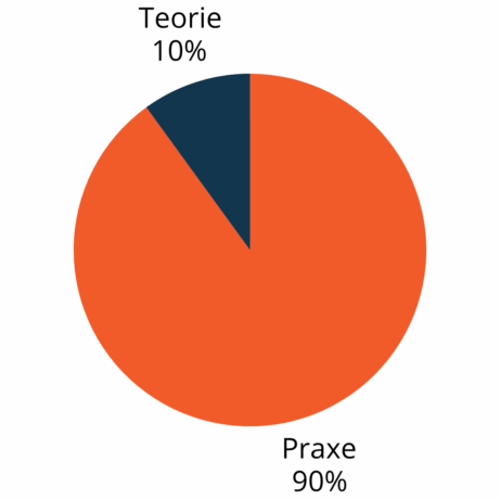 90 % času tvoří praxe, 10 % stručná teorie v grafické formě.