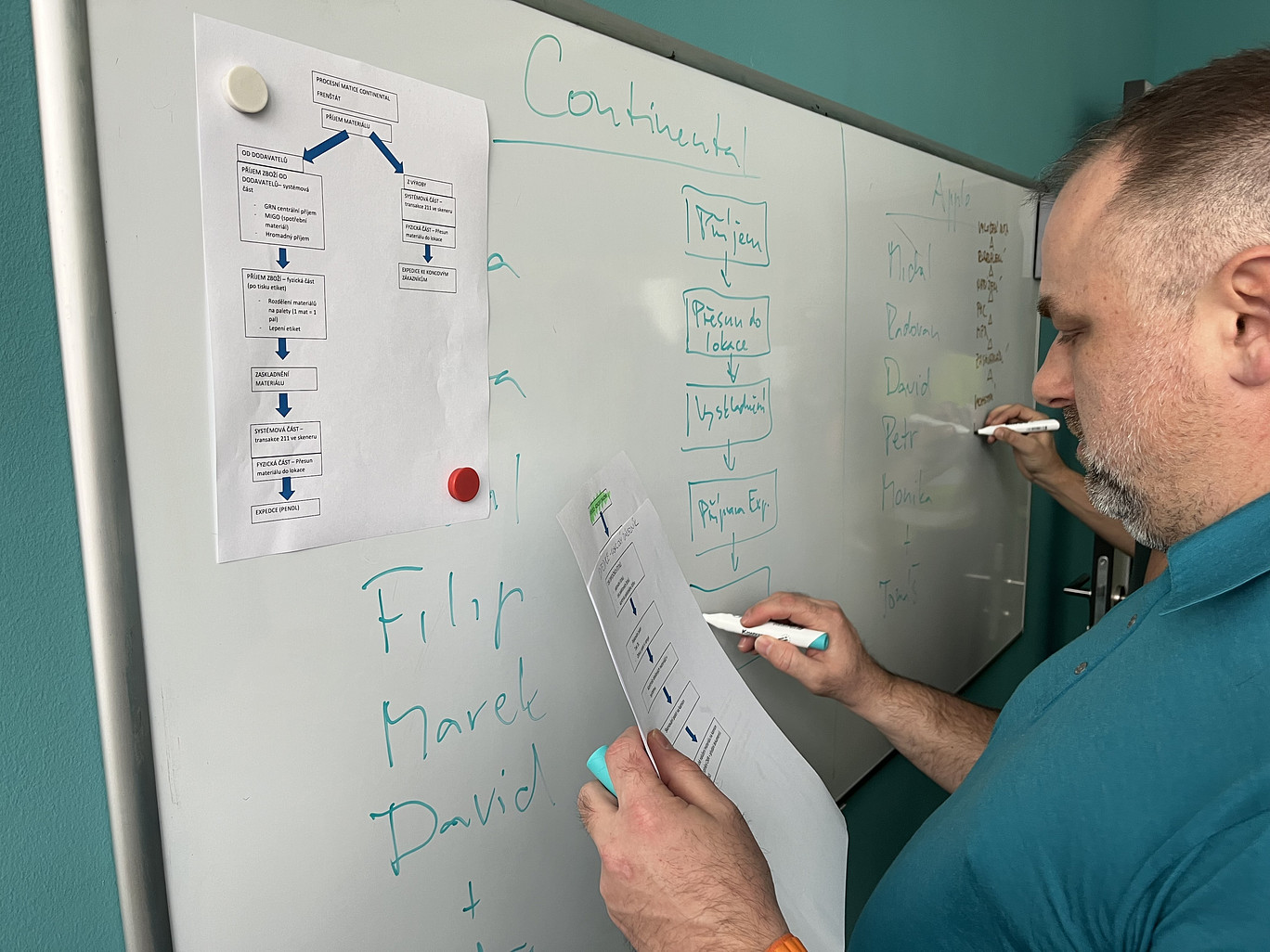 - Procesní analýzu a Spaghetti diagram reálného toku.